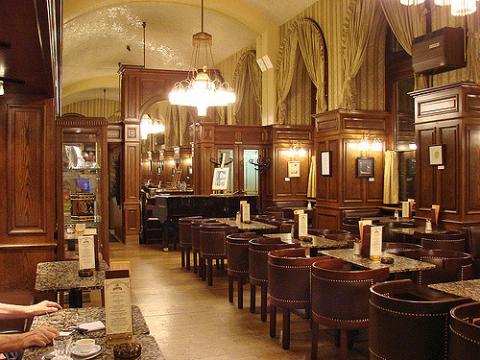 Assis dans un café, cigarette en parfum,